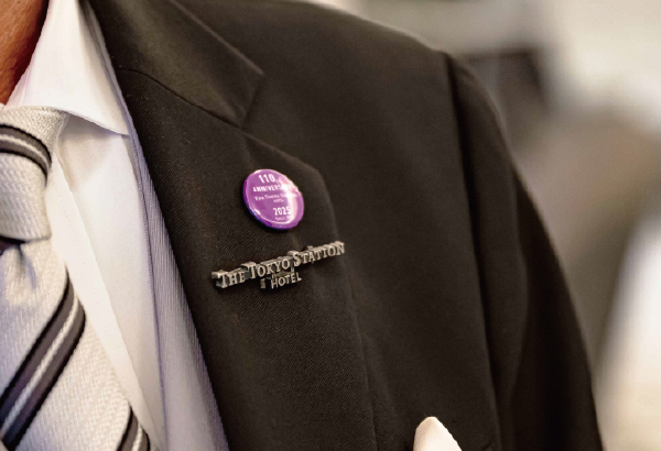 大切な一年であることの表明に、ホテルスタッフは一年間記念バッジを着用して皆さまをお迎えいたしました。一緒に祝っていただける皆さまにも配布し、その数は3,000個超。いつか街角でこのバッジを目にする日があるかも、とスタッフ一同楽しみにしています。