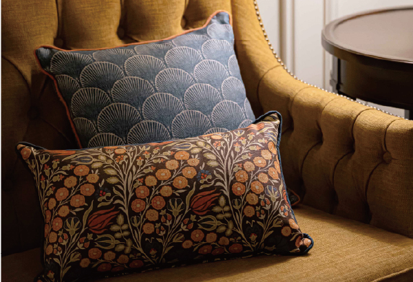 12月からは、バティのインテリアファブリックを用いたオリジナルクッションが登場。全4種のデザインは、お部屋の雰囲気や使うシーンに合わせて選べる仕立て。2サイズ展開なので、ソファに置いたりベッドサイドに添えたり、使い方を考えるのも楽しみのひとつ。こちらは現在もオンラインショップで販売中。