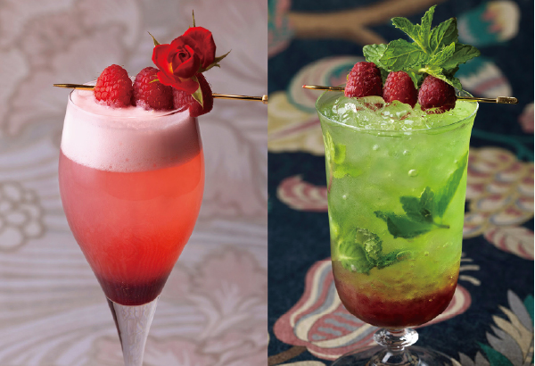 リバティにまつわる企画は、客室だけにとどまりませんでした。1月から3月にはアフタヌーンティー、8月から10月にはリバティルームをイメージしたカクテルが登場し、レストランでも多彩に展開。メニューカードやプレイスマットもこだわって、それぞれからもリバティの世界観を感じられるデザインに。なかにはそれらでカルトナージュを楽しまれた方もいらしたそう。シェフやバーテンダーが趣向を凝らしたスイーツとドリンクは、大きな反響とともに記憶に残る味わいとなりました。