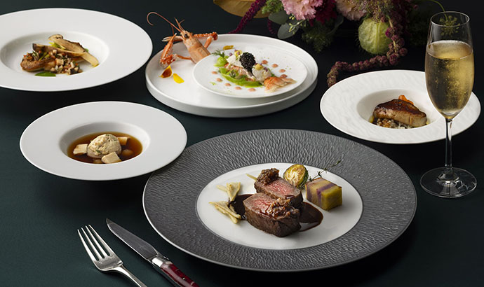 - 全国各地から厳選した食材の意外な組み合わせ。フレンチの技法に新しさを加えた〈ヌーベルキュイジーヌ ジャポネフレンチ デギュスタシオン〉です。7品+チーズまたはデザート。