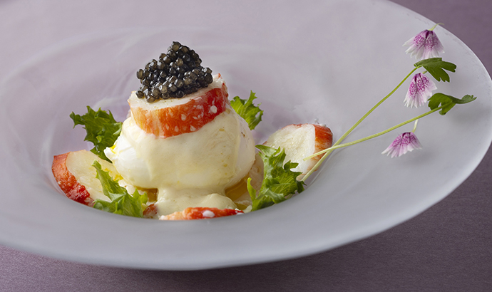 ・鱈場蟹とオーガニックエッグのウフモレ キャヴィア風味サラダ仕立て