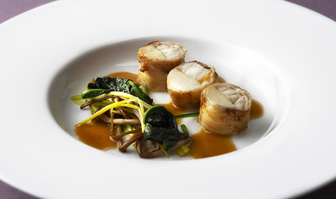 ・九絵の炙り焼とメゾンラールフュメ 阿古屋貝柱のミキュイソテ